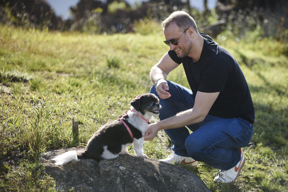 Esse é o tipo de ensaio que acontece ao ar livre, respeitando o tempo do pet e permitindo que a relação apareça de forma natural nas fotos.